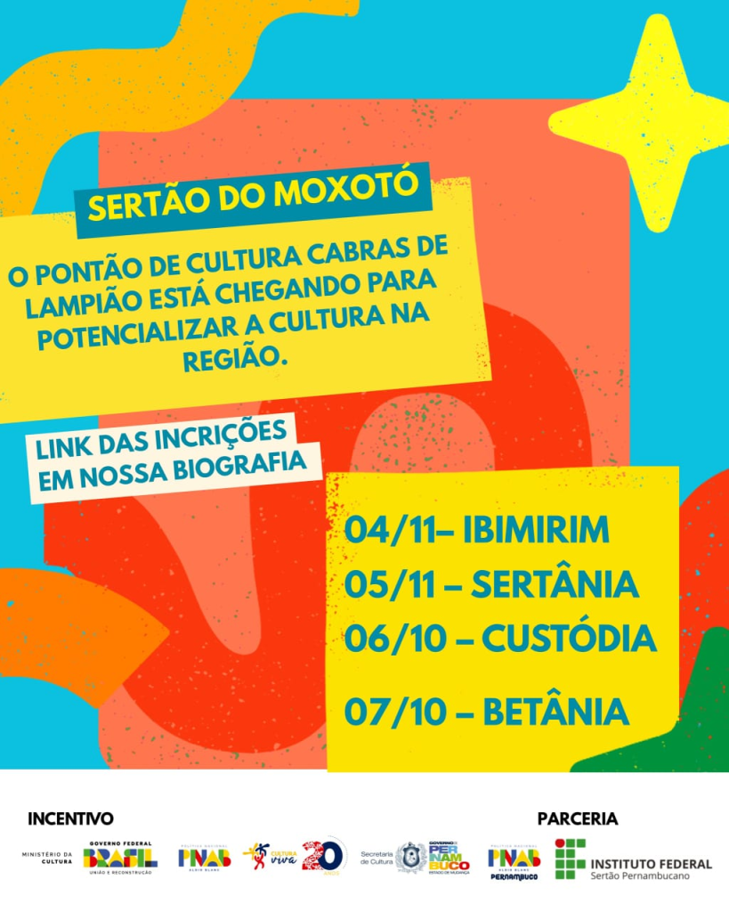 Parceria das Prefeituras e Secretarias de Cultura das cidades de Betânia, Sertânia, Custódia e Ibimim.