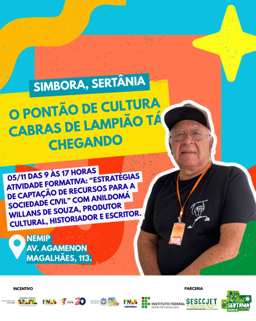 Atividade Formativa: “Estratégias de captação de recursos para a sociedade civil” com Anildomá Willans de Souza, Produtor cultural, historiador e escritor.